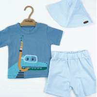 OUTWEAR Summer triple set Tshirt + Shorts + Panama Hat (Blue)